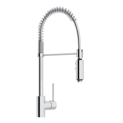 Distinctive Features: Pre-rinse faucets are the typical faucets you see in a restaurant or commercial kitchen. They have a high-arc spout with a very high-pressure pull-out spray nozzle to blast off food from plates. Traditional commercial faucets are way too big for residential installments, but a few notable faucet brands have created smaller versions for home kitchens that keep the basic ...