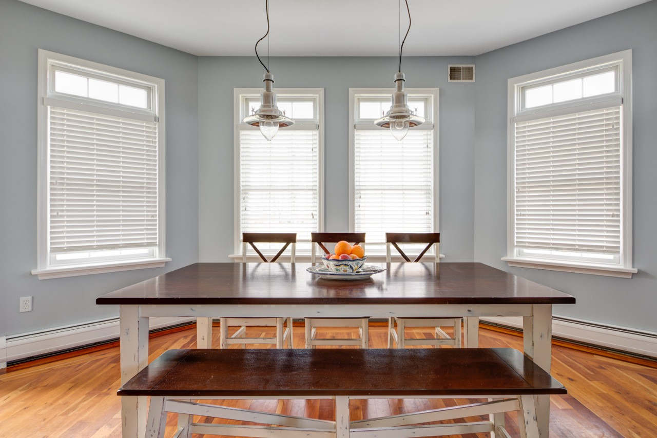 Benjamin Moore's "sweet innocence" on the ceiling provides a hint of blue sky and is continued on the underside of the exterior eaves. Save Photo Master Bath Renovation Decorative Arts & Design Example of a classic home design design in New York Save Photo Eagle Trail Durham Builders