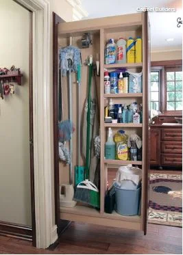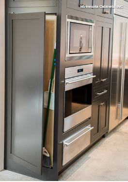The pullout drawers could be used to stash all manner of broom closet items, such as furniture polish, dusting rags and rubber bands. LEICHT New York 7. Vacuum friendly. This broom closet solves a common storage problem: the unwieldy bulk of a vacuum with an extension wand.