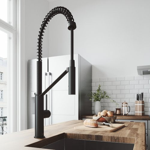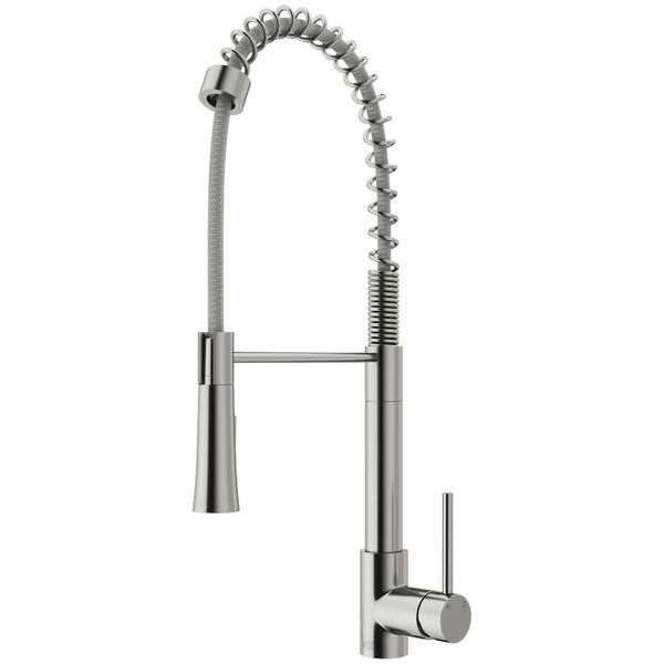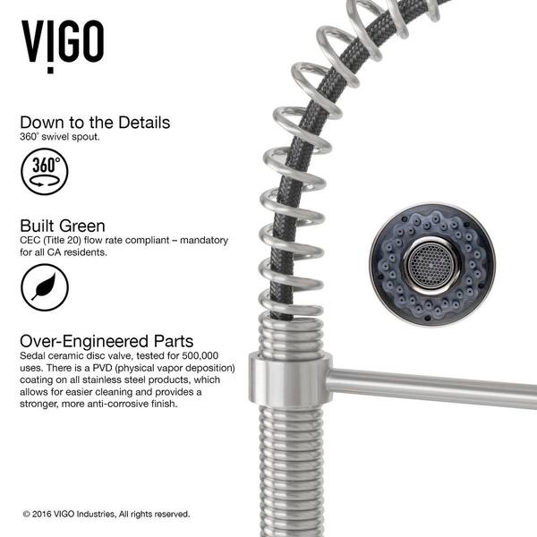 Vigo kitchen faucet review. The pull-down, dual action spray head on the VIGO Edison Pull-Down Spray Kitchen Faucet allows for your choice of aerated flow or powerful spray for all your modern kitchen needs. The 360° swivel spout extends up to 30 in. for ease of use and maneuverability. With spiral details and a solid brass construction, the Edison kitchen faucet is sure to be an immediate favorite in your home. The Vigo Edison has a modern and stylish feel to it and looks as though it was made from metal springs. It has a very high arc and takes up very little space, making it perfect for any size kitchen. But what other convenient features does this faucet have? Sale Bestseller No. 1. VIGO VG02001ST 19" H Edison Single-Handle with Pull-Down Sprayer Kitchen Faucet in Stainless Steel. Tight space installation: faucet's 90° forward rotation allows for installation in narrow spaces without hitting the tile backsplash. 360 degree swivel spout: this unique swivel spout allows total flexibility and ... It might not be the best-looking faucet in these Vigo faucets reviews but the design is excellent for a medium-sized sink. The hose has a height of about 15 inches and its reach is 9 inches. With stainless paint, it is an elegant decoration for your kitchen. It's great and versatile with the handle with 2 hot/cold modes.