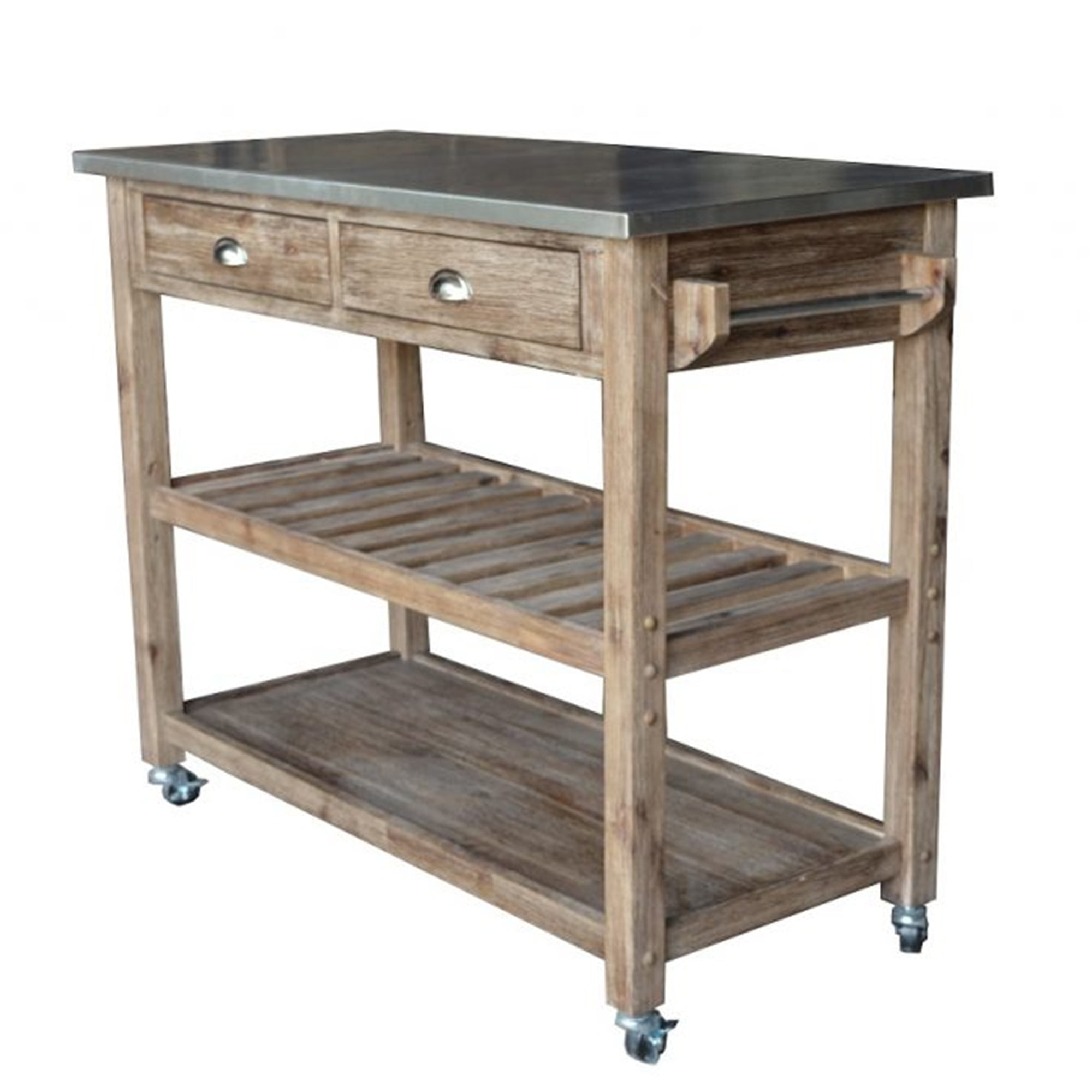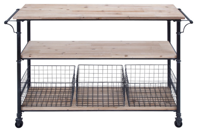 Natural Wood Top Kitchen Cart The cushy seat, thin metal legs and wood accents make this chair look much more expensive than what you'll actually pay. It's got two drawers, an adjustable storage shelf, a towel bar and a natural wood top for food prep. Everything you need to make your kitchen more functional in one piece of... 50 Most Popular Metal Kitchen Islands and Carts for 2021 | Houzz 3 Tier Wood and Metal Kitchen Cart with Mesh Side Panel, Brown and BlackEmbellish your kitchen and dining space by bringing in this versatile Kitchen Cart which offers spacious storage with its 2 open shelves and is ...Read More. Metal Kitchen Cart Design Ideas Metal Kitchen Cart - Design photos, ideas and inspiration. Amazing kitchen features a white kitchen island topped with gray quartzite countertops fitted with a sink and gooseneck faucet lined with wood and metal swivel counter stools next to a white porcupine quills mirror, Janice Minor White... Baxton Studio Lancashire Brown Wood & Metal Kitchen Cart... Metal wheels make this kitchen cart highly mobile. Sturdy construction ensures years of use. Superior styling at a discount furniture price. The surface space combination in Wood and Metal Kitchen Cart/island gives this a stunning farmhouse or industrial design perfect for any home.