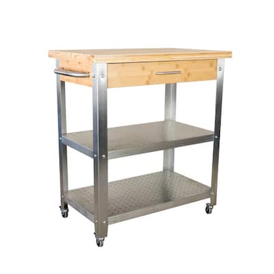 FirsTime Stainless Steel Wood Base with Steel Metal Top Rolling Kitchen Cart (16-in x 31.5-in x 31.5-in)