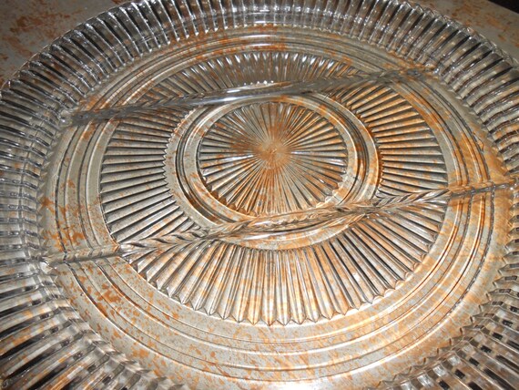 Glass serving platters. Both have 4 sections and a center ... Views: 31. Glass serving platters. Both have 4 sections and a center section. The first photo is 11 round with all 4 sections the same size and one center section. The second photo is 12 round with 1 large, 2 medium and 1 small section plus a center section. ( the 3rd photo is the same platter)