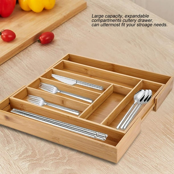 Bamboo Expandable Kitchen Drawer Organizer Cutlery Tray, 2 Removable Knife 19962866760 | eBay