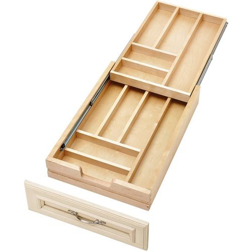 Wood Cutlery Tray Insert - Rev-A-Shelf Organize kitchen drawers with Rev-A-Shelf's Wood Cutlery Tray Insert. The 4WCT Series is made of our classic Maple hardwood with a UV cured clear finish to ensure an acceptable match to any kitchen cabinet. This modern day clutter solution requires a simple drop-in installation with two sizes that may be trimmed to fit various drawer sizes.