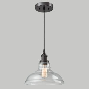 Meridian M70081ORB Templeton Pendant Light in Oil Rubbed ... Sometimes a simple solution is the only thing that works. The Templeton pendant light from Meridian is elegantly designed to appear simple. And beautiful. Perfect for situations when the light shouldn't take over the room.Oil Rubbed Bronze finish with a clear glass shade.Pendant is 11.5 tall by 9.5 wide. Includes one 6 downrod and four 9.5 downrods to adjust the height up to 43.Uses one ...
