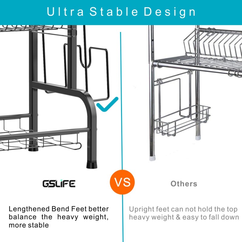 2 Tier Dish Drying Rack -Aluminum Rustproof Dishes Drainer and Removable Drainboard for Kitchen ...