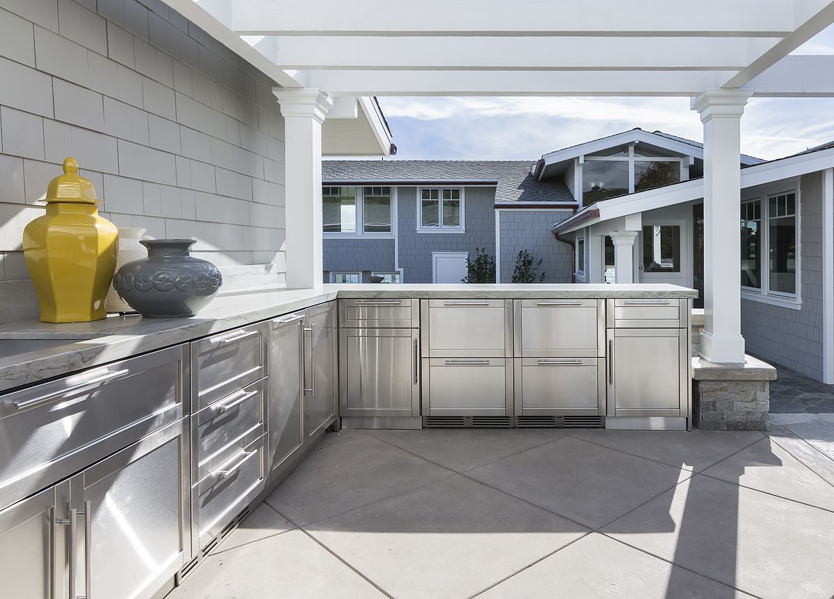 Outdoor Kitchen Cabinets: Your DIY Guide & 6 Best Materials Your coating will chip and your aluminum outdoor kitchen cabinets will likely corrode beneath. 4. Polished Stainless Steel The fourth option is stainless steel! These metal outdoor kitchen cabinets will be much shinier and slicker than the powder-coated ones will be. Pros In terms of advantages…