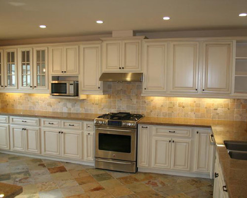 25 Antique White Kitchen Cabinets Ideas That Blow Your Mind The white cabinet is in antique style and the kitchen island is close to modern style. The silver light fixture is another way to add more antique vibes into the kitchen. From that lighting design, you get both the vibes and the luxury. The mosaic backsplash is a nice touch for your antique kitchen. 14.