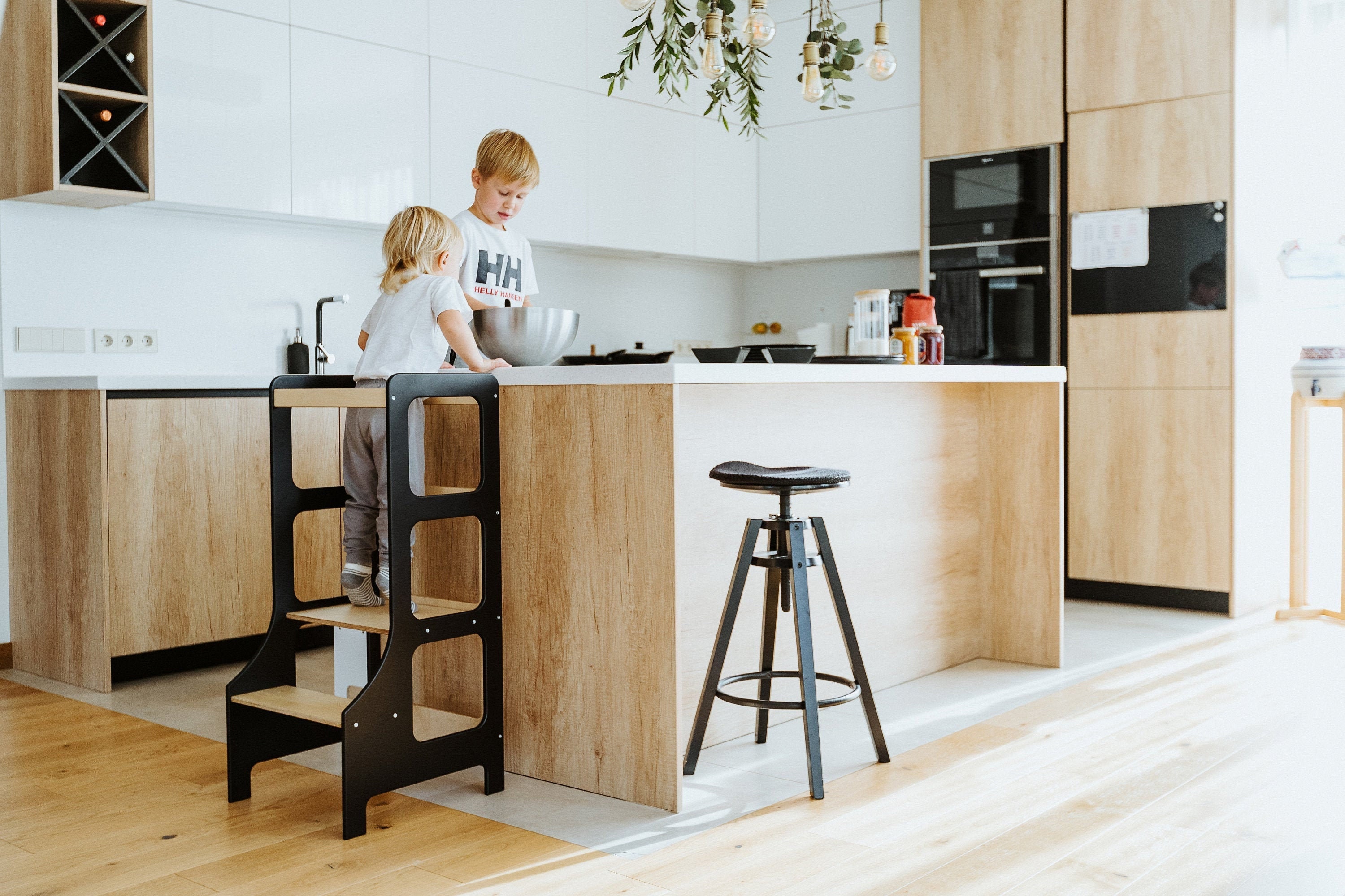 Tower Step-Up Kitchen Helper - Guidecraft Kids' Furniture and Toys Tower Step-Up Kitchen Helper - White. | Product Q & A. $ 129.95 $ 149.95. Add to cart. Buy Now. Age: Save for later. Estimated Delivery: Sat, Sep 17 - Fri, Sep 23. Designed for kids and adults, the Tower Step-Up Kitchen Helper safely supports up to 200 pounds and features a wide platform that adjusts to two heights and hand-holds. Guidecraft High Rise Step-Up Kitchen Helper - Natural Great for a kitchen, playroom or bathroom. Features hand-holds to assist in climbing up and down; side panels and textured, non-slip stair treads. Safely supports up to 125 lbs. Designed and engineered for ages 2+. 21″L x 17″W x 32″H. Step height measures 7″/14″ from the floor. Sturdy step stool designed for hard-to-reach home areas Kids' Step-up Kitchen Helper Gray - Guidecraft : Target Platform adjusts to two heights so it can grow with your child (14" and 17" platform) Operates as a handy step-up for adults. Sturdy, yet light enough to move easily even for a child. Assembly: Follow the simple step-by-step pictorial instructions. Material: MDF with a child-safe polyurethane finish. Assembled dimensions: 20"L x 22.3"W x 36"H. Step-Up Kitchen Helper for kids in the kitchen at PHG Step-Up Kitchen Helper, Espresso This sturdy step stool is designed to safely and securely elevate children to countertop height. With a better view and easier access, they can help in daily activities: baking, mixing, preparing food, cleaning up, or playing on the countertop near you as a meal is prepared.