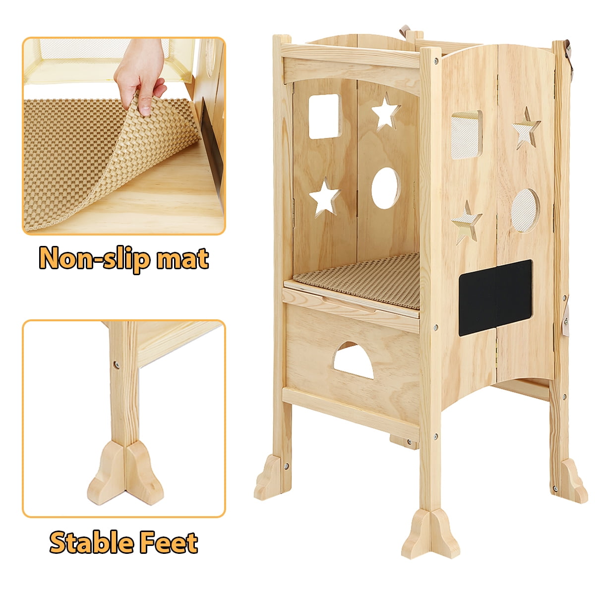 Toddler Step Stool,Foldable Learning Tower for Kids,Wooden Kitchen Stool Helper for Toddler with Non-Slip Mat