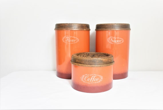 Retro Kitchen Canisters - Etsy Vintage Kitchen Canister Set (4 Graduated Red Canisters with Lids and Bakelite Handles, Mid 1900s) Vintage MidCentury Retro Kitchen Décor threeoaksvintage (58) $70.92 Set of 4 metal canisters, GSW, vintage, tin, container, kitchen, pantry, decor decoration, storage, retro, tins, white chrome, farmhouse UniqueHomeShop (549) $40.00
