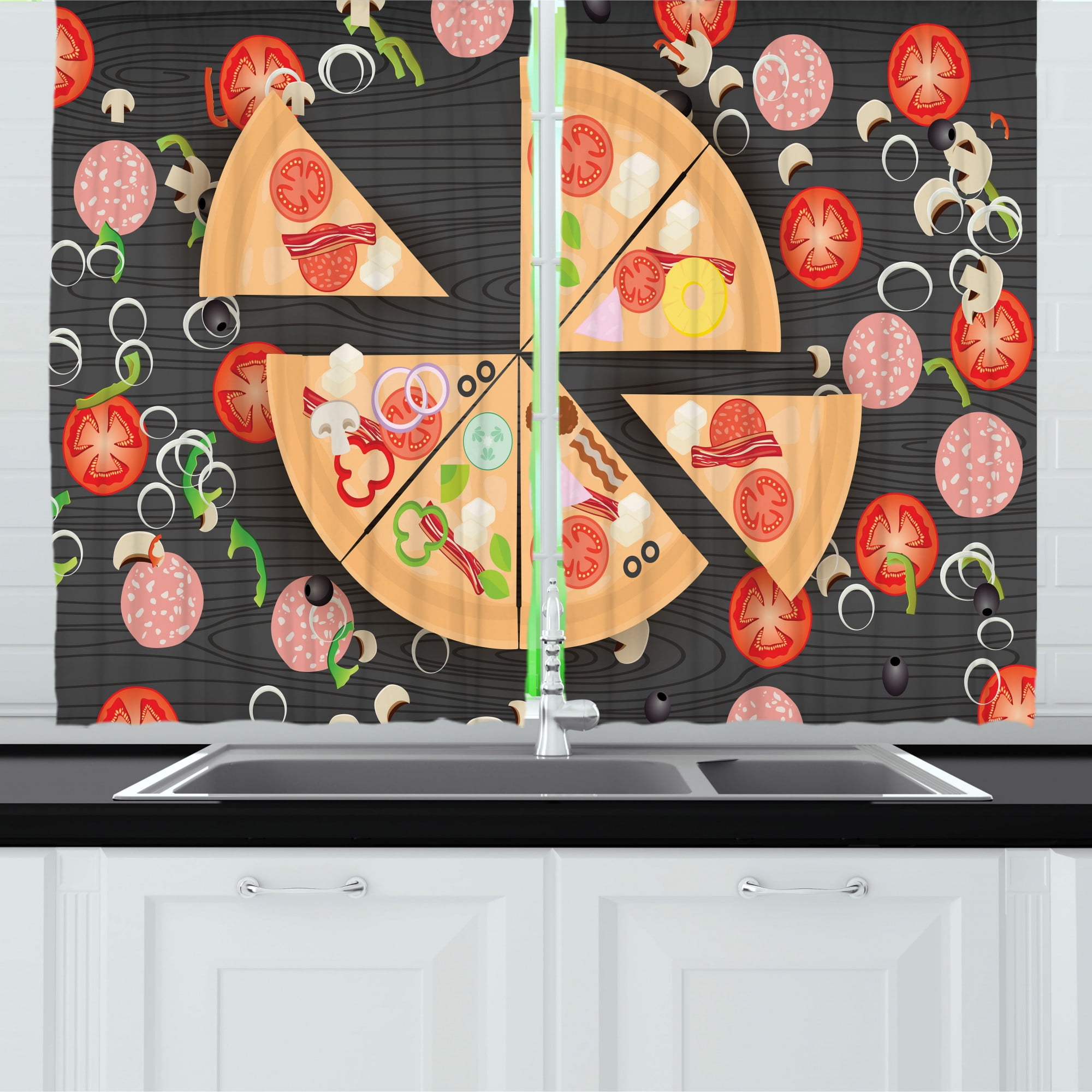 Ambesonne Italian Kitchen Curtains, Old Courtyard Rome Italy Cafe Chairs City Historic Houses in Street, Window Drapes 2 Panel Set for Kitchen Cafe ...