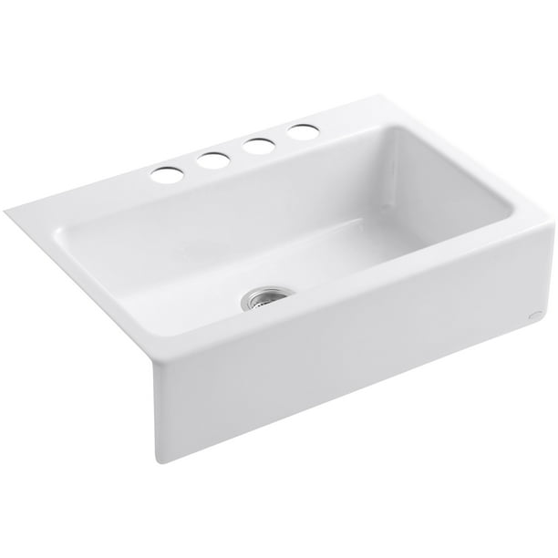 KOHLER Whitehaven K-6488-0 Enameled Cast Iron 1-Bowl Kitchen Sink in ... The Kohler Whitehaven apron-front single-basin sink is made of enameled cast iron, has a self-trimming apron, and is easy to install (click each to enlarge). From the Manufacturer Constructed of durable KOHLER enameled cast iron, the Whitehaven self-trimming, apron-front sink features a clean, versatile design to complement any decor.