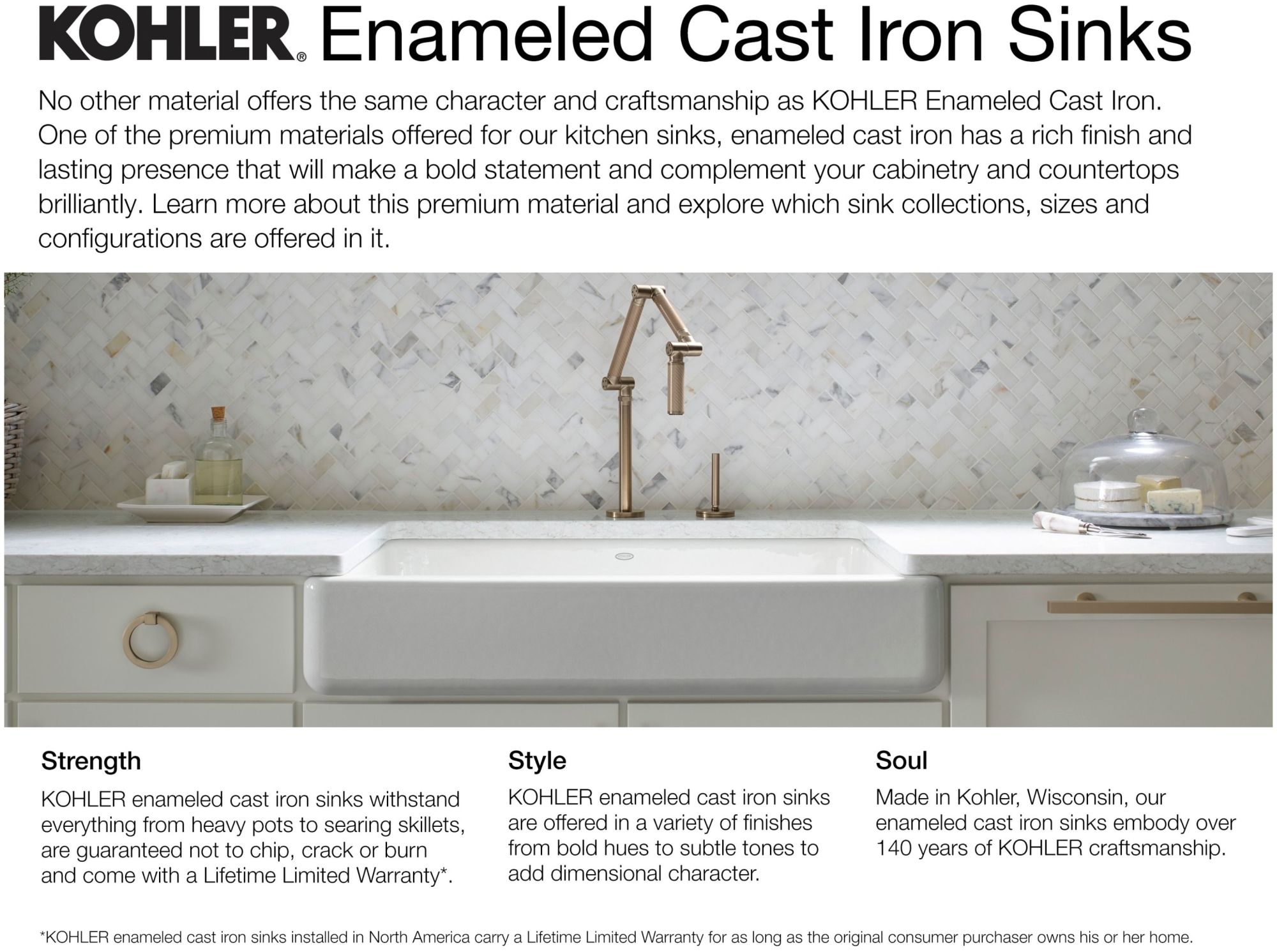 Toilets, Showers, Sinks, Faucets and More for Bathroom & Kitchen | KOHLER Around the world and across industries, Kohler stands for design at a single level of quality: the highest. To experience any one of our many brands, from kitchen and bath to energy and destinations, is to feel that singular commitment. We invite you to experience the well-known and unexpected facets of Kohler. Welcome to the family. KOHLER Enameled Cast Iron Kitchen Sinks | Kitchen | KOHLER KOHLER kitchen sinks come in a variety of styles, designs and materials. See your function and installation options and find the perfect sink for your ktichen.