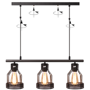 Fixtures - 3 Lights Foyer Light Fixtures with Black Metal Cage Lampshade, Adjustable Length 47" Ceiling Lamps for Living Room, Dining Room