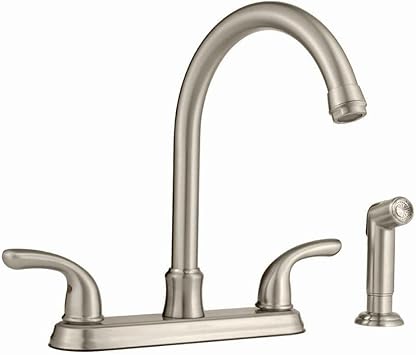 Glacier Bay Builders 2-Handle Standard Kitchen Faucet with Sprayer in ... The Glacier Bay Builder 2-Handle Kitchen with sprayer in Stainless finish offers a convenient high arc spout for ease of use in the kitchen. The included a side sprayer makes cleaning the sink, washing vegetables, or filling containers quick and easy. Glacier Bay provides a Limited Lifetime Warranty.
