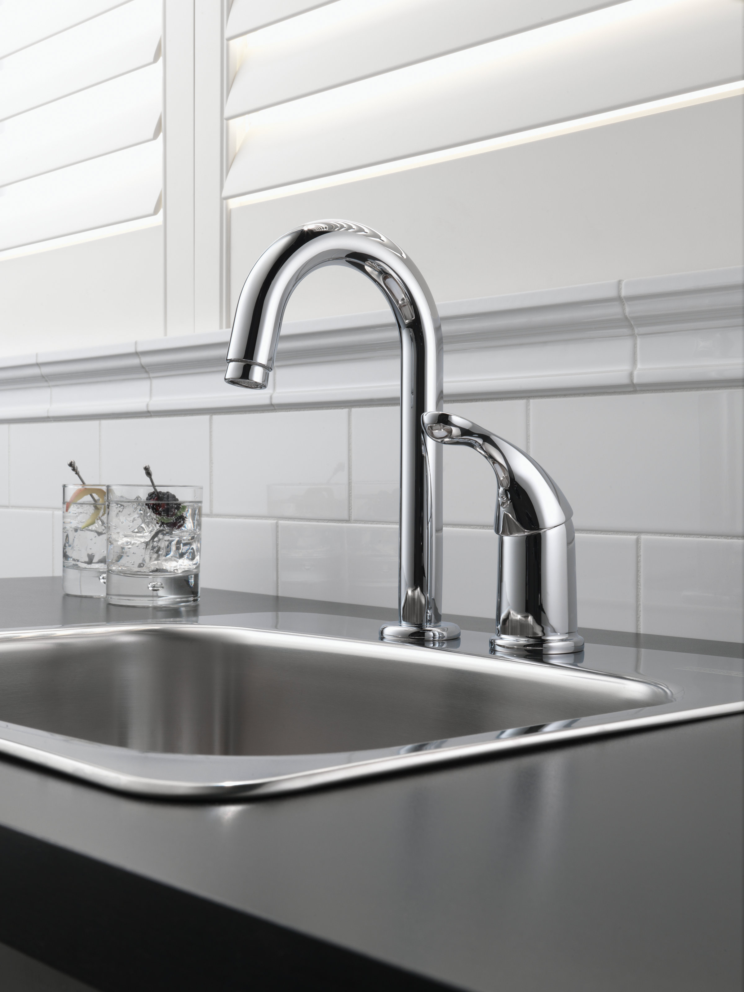 Delta Classic Single-Handle Standard Kitchen Faucet with Side Sprayer in Stainless Steel 400-SS-DST-A - The Home Depot