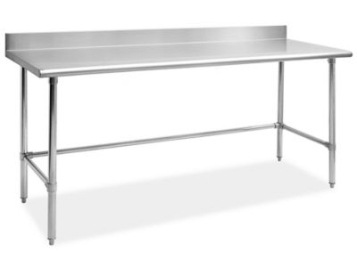 Stainless Steel Worktables with Backsplash in Stock - ULINE Uline stocks a wide selection of Stainless Steel Worktables with Backsplash. Order by 6 p.m. for same day shipping. Huge Catalog! Over 40,000 products in stock. 12 Locations across USA, Canada and Mexico for fast delivery of Stainless Steel Worktables with Backsplash. ... 1 5/8" diameter steel tube legs. 35" table height. Available with or ...
