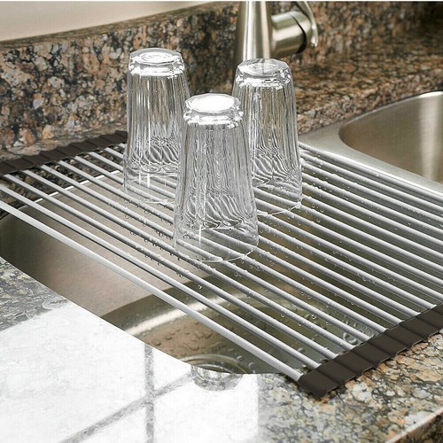 Roll up Dish Drying Rack Over The Sink Dish Drying Rack Portable Stainless Still Rolling Rack Folding Dish Drainer Sink Rack Mat Dish Drying Rack for ...