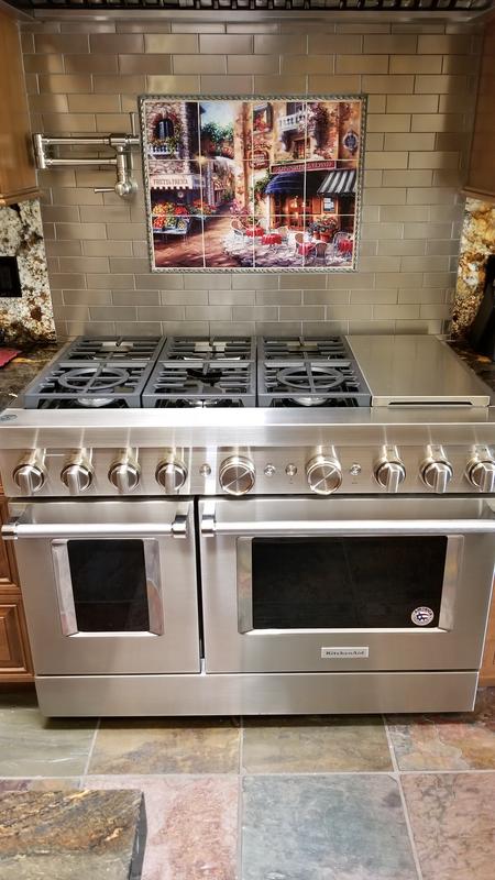 KitchenAid® 48" Stainless Steel Commercial Style Freestanding ... Satisfy your craving to create with a 48-inch KitchenAid® Commercial-Style Range with Even-Heat™ Chrome Electric Griddle. This 6-burner gas range features ...