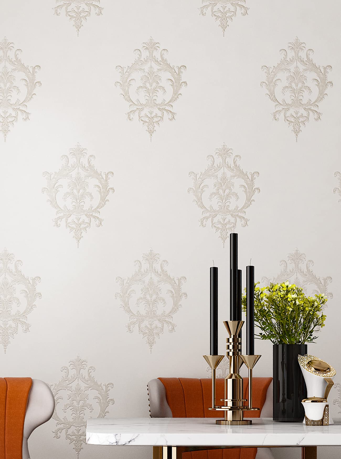 FunStick 21" x 200" Vintage White Peel and Stick Wallpaper Damask Embossed Textured Wallpaper Self Adhesive Wall Paper Roll Thick Fabric White Stick ...