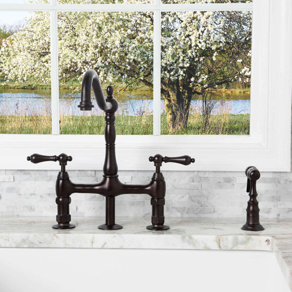 Amazon.com: kitchen bridge faucet Kingston Brass KS1273ALBS Heritage 8-Inch Kitchen Bridge Faucet with Brass Sprayer, Antique Brass. 4.5 out of 5 stars 825. $299.18 $ 299. 18 $439.95 $439.95. FREE delivery Wed, Oct 5. ... KOHLER 76519-4-SN K-76519-4-SN Artifacts Deck-Mount Bridge Kitchen Sink Faucet with Lever Handles and sidespray Vibrant Polished Nickel.