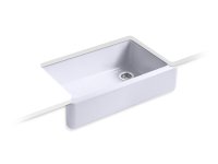 Kohler Whitehaven 36" Apron Front Sink - Tall Apron K-6489-0. 36" Tall Apron - Double Bowl - White +$503. K-6427-0. Add To Cart. The Whitehaven apron-front kitchen sink features a streamlined and versatile farmhouse style to complement any decor. Perfect for remodeling projects, it has a shortened apron that allows for installation on most new or existing 36-inch standard cabinetry.