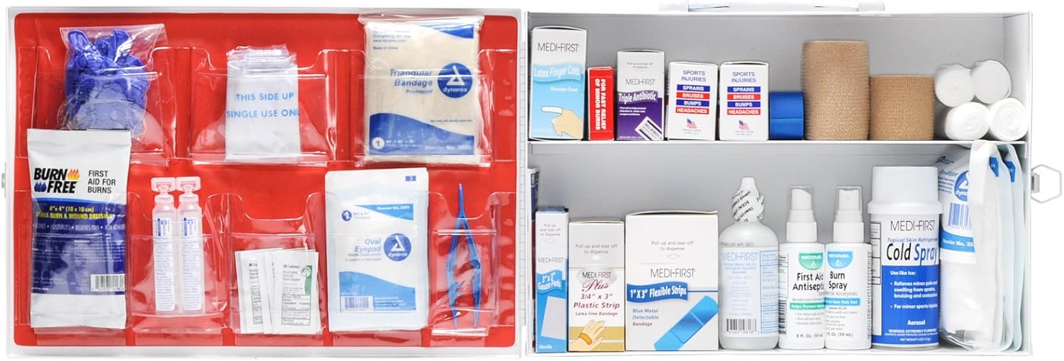 Kitchen first aid kit. First Aid Only 158 Piece First Aid Emergency Kit (520-FR) First Aid Only emergency first aid kit prepares you for tackling immediate injuries. The 158 piece kit has supplies for sprains and swelling, as well as cuts, scrapes, and burns. This lightweight bag is easy to carry and compact, measuring 16 x 8 3/4 x 7 1/2 inches, with compartments to store essential first aid supplies. First Aid Kit Checklist An organised and properly stocked first aid kit can supply peace of mind in a medical emergency. Additionally, this simple preparation could help to save a life. Safe Work Australia, a Government statutory agency, established in 2009, mandates that all workers be able to access a first aid kit in their workplace. Emergency Medical Kit List - Build Your Own Custom First Aid Kit 22.2.2020 · Pre-Stocked: Rescue Essentials Covert Carry clamshell 5.75″ x 3.75″ x 2.25″ (44 cu inch) Weight: 10.4oz – excellent tiny trauma kit – primarily designed for police and EMT use. Its tiny and carefully designed. This kit has little to no room for add on items. Excellent but expensive. Empty Rescue Essentials Compact IFAK rip-away pouch clamshell 6.5″ x 4″ x 2″ … Amazon.co.uk: First Aid Kits - First Aid Kits / First Aid: Health ... 2022 Upgrade Compact First Aid Kit -Portable First Aid Bag with Labelled Compartments Medical Kit for Home, Business, Car, Hiking, Backpacking, Camping, Traveling, and Cycling 4.7 out of 5 stars 25 £22.74 £ 22 . 74 (£22.74/count)