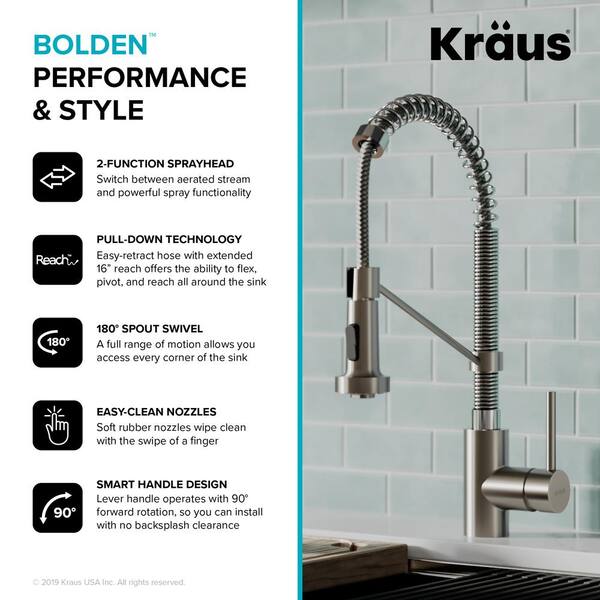 Kraus KPF-2250 Pull-Out Kitchen Faucet In Depth Review The Kraus KPF-2250 Pull-Out Kitchen Faucet is one of the newer design of Kraus. It has made from the previously made Kraus KPF-2110 Kitchen Faucet with cutting out some features to reduce the price. However, it has same dual function spray feature like the KPF-2110. The dual function spray head that delivers an aerated flow and powerful spray. Kraus KPF-2150 Stainless Steel Pullout Spray Kitchen Faucet - Walmart.com The KPF-2150 is a superb example of Kraus quality. Flawless finish, heavy duty construction, perfectly balanced. As with all Kraus products, it is carefully packaged with well-written instructions and the few special tools needed for installation. The quality of construction and finish put this faucet head and shoulders above anything else. Kraus KPF-2150 Single Lever Stainless Steel Pull Out Kitchen Faucet 3.6 out of 5 27 global ratings Kraus KPF-2150 Single Lever Stainless Steel Pull Out Kitchen Faucet by Kraus Write a review How are ratings calculated? Top positive review All positive reviews › Amanda Powers Gorgeous...but won't work in tight spaces Reviewed in the United States on April 9, 2016 Kraus KPF-2150-SD20 Single Lever Pull Out Kitchen Faucet and Soap ... Bosch CLPK221-181 18-Volt Lithium-Ion 2-Tool Combo Kit with 1/2-Inch Brute Tough Drill/Driver, Impact Driver, 2 Batteries, Charger and Case
