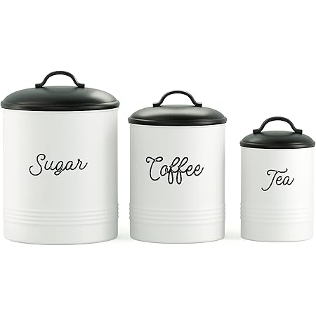 Amazon.com: Barnyard Designs White Canister Sets for Kitchen ... KITCHEN CANISTER SET - These beautiful and inviting food safe metal nesting canisters will evoke the country farm feel into your kitchen. Add style and functionality with these rustic farmhouse decor for the kitchen accessories. FARMHOUSE KITCHEN DECOR - Round metal kitchen canisters labeled with a stylish vintage print.