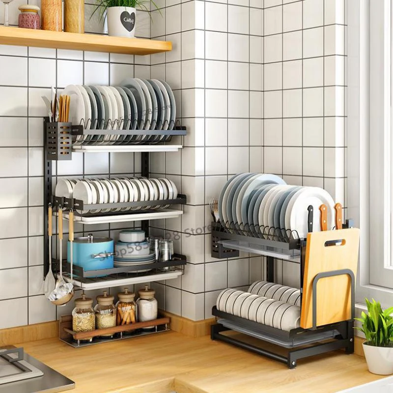 Wall Mounted / Table Type Stainless Steel Plate Drain Rack Multi-functional Plate Bowl Drying Rack Includes 3 Drain Pans And 3 H - Buy Dish Rack ...