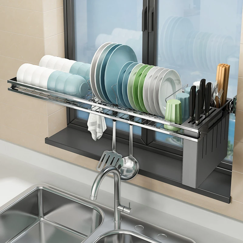 Wall Mounted High Quality Stainless Steel Roll Up Hanging Sink Side Kitchenware Storage Drying Rack - Buy Dish Drying Rack 2 Tier,Over Sink Dish ...
