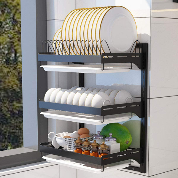 Top 10 Coolest Best Hanging Dish Rack Reviews - Cchit.org Hanging Dish Drying Rack Wall Mount Dish Drainer,3 Tier junyuan Kitchen Plate Bowl Spice Organizer Storage Shelf Holder with Drain Tray with 3 Hooks,Stainless Steel Black Coating (3 Tier, 21.8) ... There are two installation methods for the wall mounted kitchen pot holder. The support brackets can be installed to support the rack from above or ...