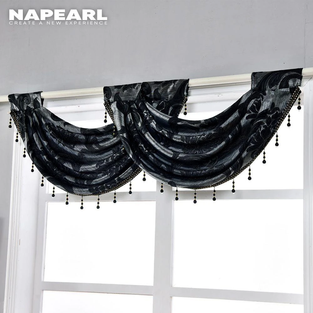 NAPEARL Beaded Decorative Valance Floral Kitchen Rod Pocket Curtains Jacquard Treatment Luxury Modern Thick