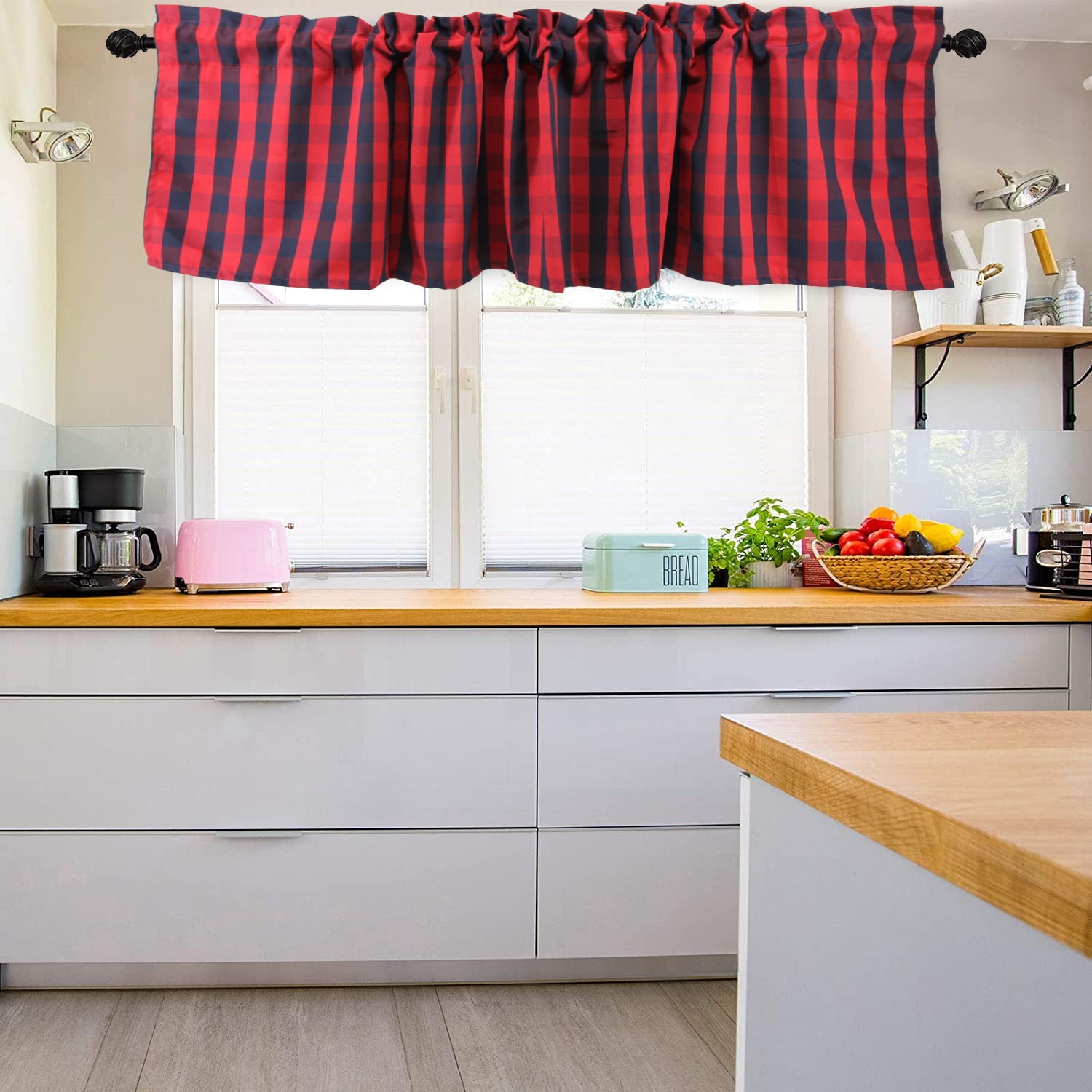 SEEYE Farmhouse Kitchen Curtains Buffalo Plaid - Valances for Windows Light Filtering Rod Pocket Thermal Insulated or Home Bedroom Cafe Decor Window ...