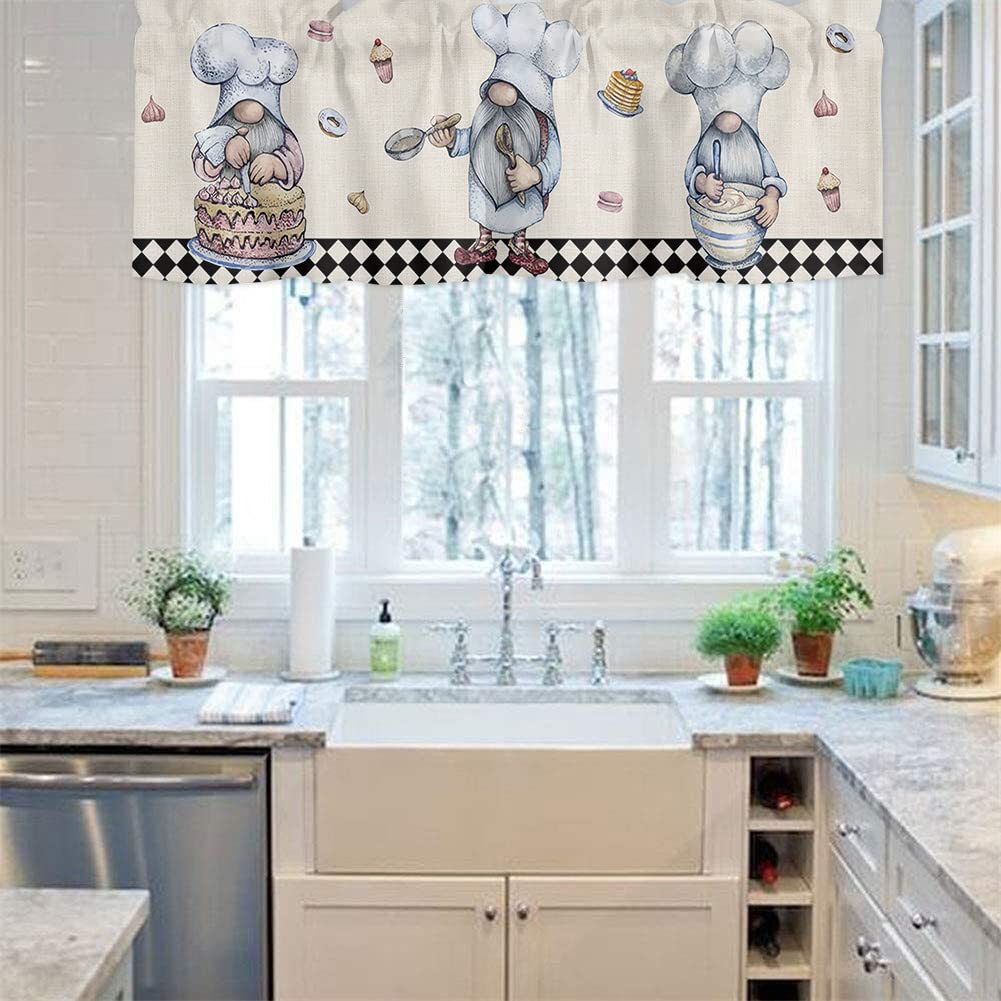 Kitchen Curtains Fat Chef Valances for Windows Rod Pocket Curtain Valance Blackout Kitchen Window Curtains Black Buffalo Plaid Kitchen Dessert Window ...