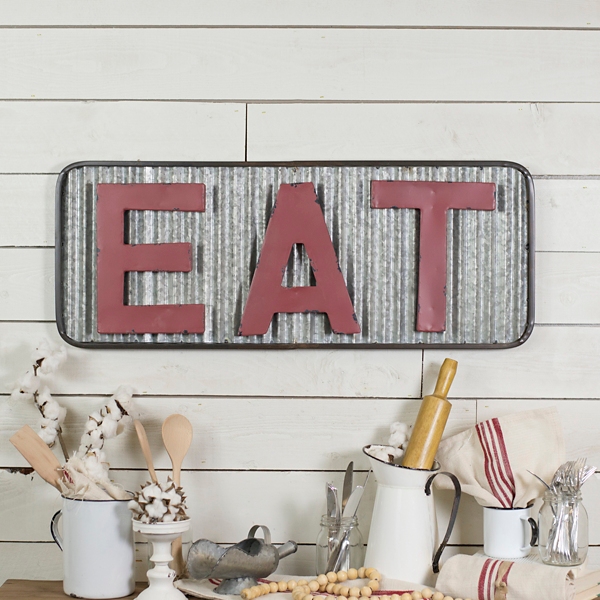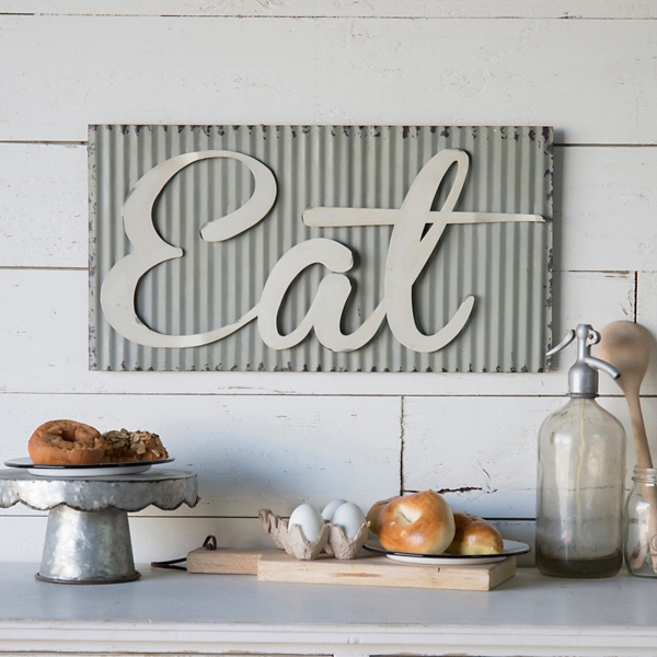 STEEL metal Lettering , EAT SIGN , food sign , vintage kitchen decor GALVANISED STEEL industrial shabby chic style metal EAT sign. Can be used inside or outside. GREAT FOR ANY HOME,OFFICE,SHOP,PUB,CAFE,BAR OR VINTAGE WEDDING, ... Buy Eat Signs | Eat Decor Sign - Free Shipping - MyGift Add a eat wall sign to your kitchen or dining room, the perfect wall art decor ... Vintage Gray Wood & Mason Jar Utensil Holder w/ EAT Writing & Metal Wraps.