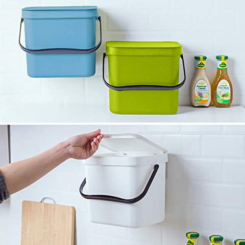LALASTAR Waste Basket with Lid, Cabinet Door Trash Can, Wall Hanging Garbage Can for Kitchen, Bathroom, RV, Boat, 1.8 Gallon, Blue