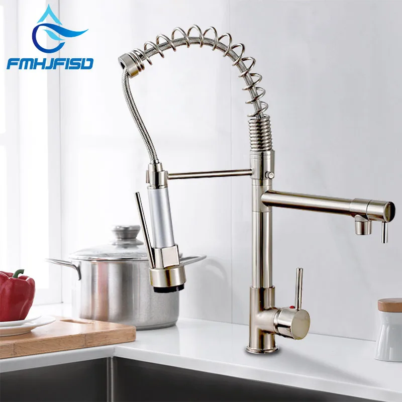 Dual Spout Kitchen Faucet 360 Degree Rotation Spring Pull Down Sprayer Deck Mounted Kitchen Sink Faucet Mixer Taps torneira