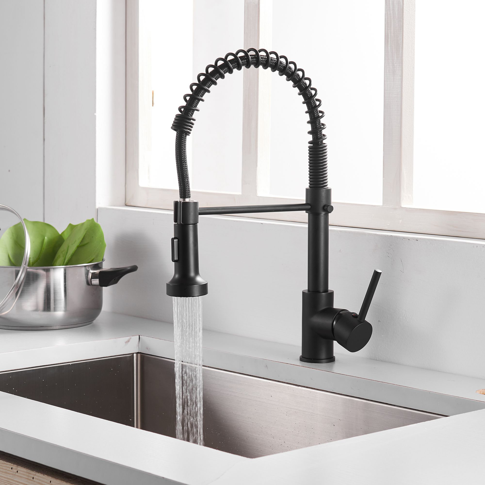 Kitchen Faucets Commercial Solid Brass Single Handle Single Lever Pull Down Sprayer Spring Kitchen Sink Faucet,Matte Black - Buy Pull Down Kitchen Faucet,Black Kitchen Faucet,Single Handle Kitchen ...