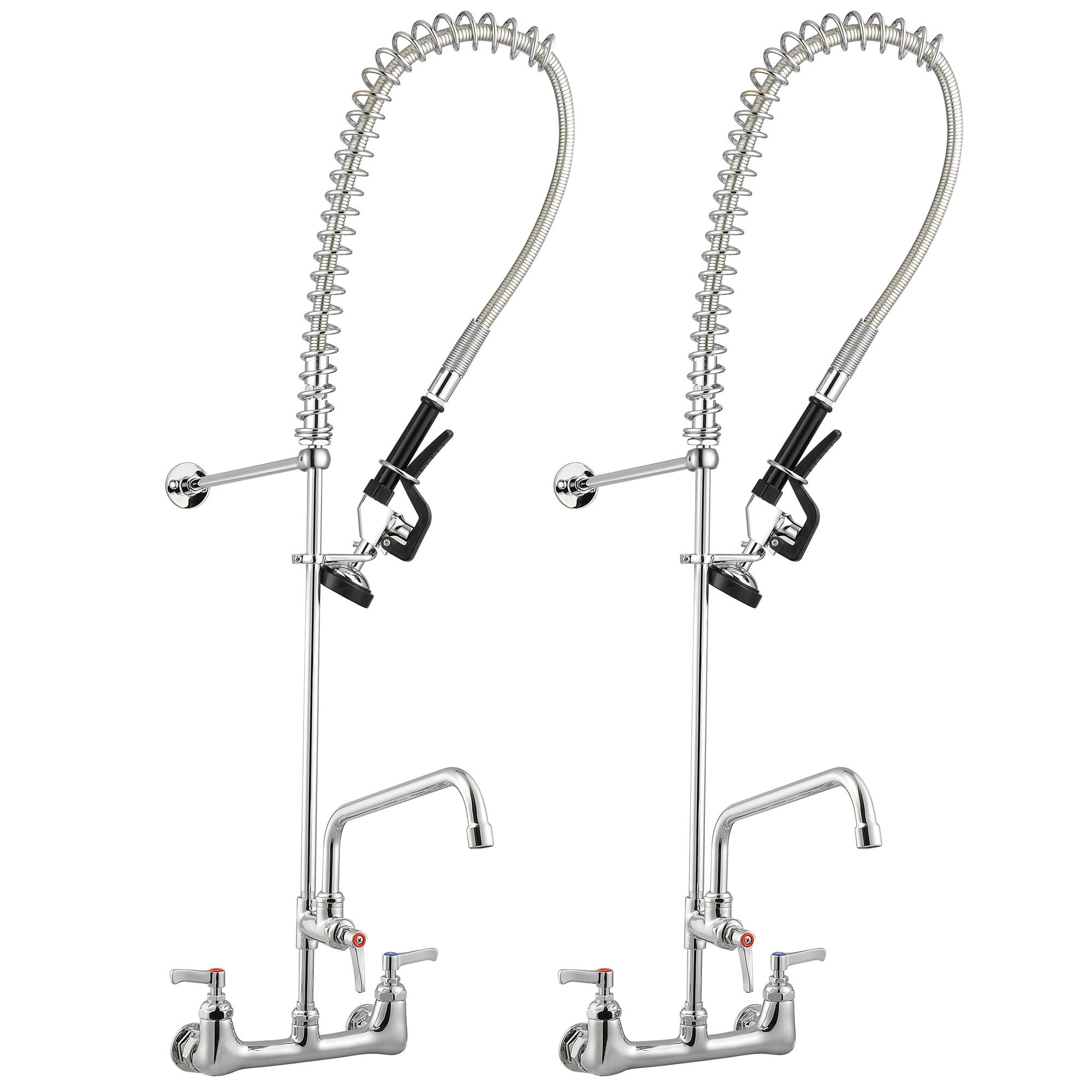 COOLWEST Commercial Sink Faucet 8 Inch Center Wall Mount Kitchen Faucet with Pull Down Pre-Rinse Sprayer and 12” Add-on Swivel Spout, 36” Height ...