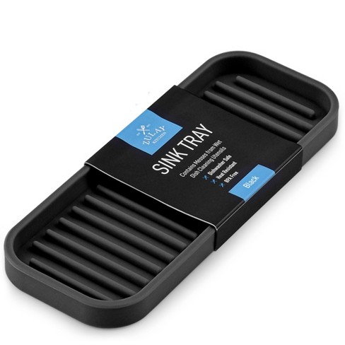 Zulay (9x3.5) Silicone Sponge Holder For Kitchen Sink - Flexible Multipurpose Kitchen Soap Tray Sponge Holder - Black