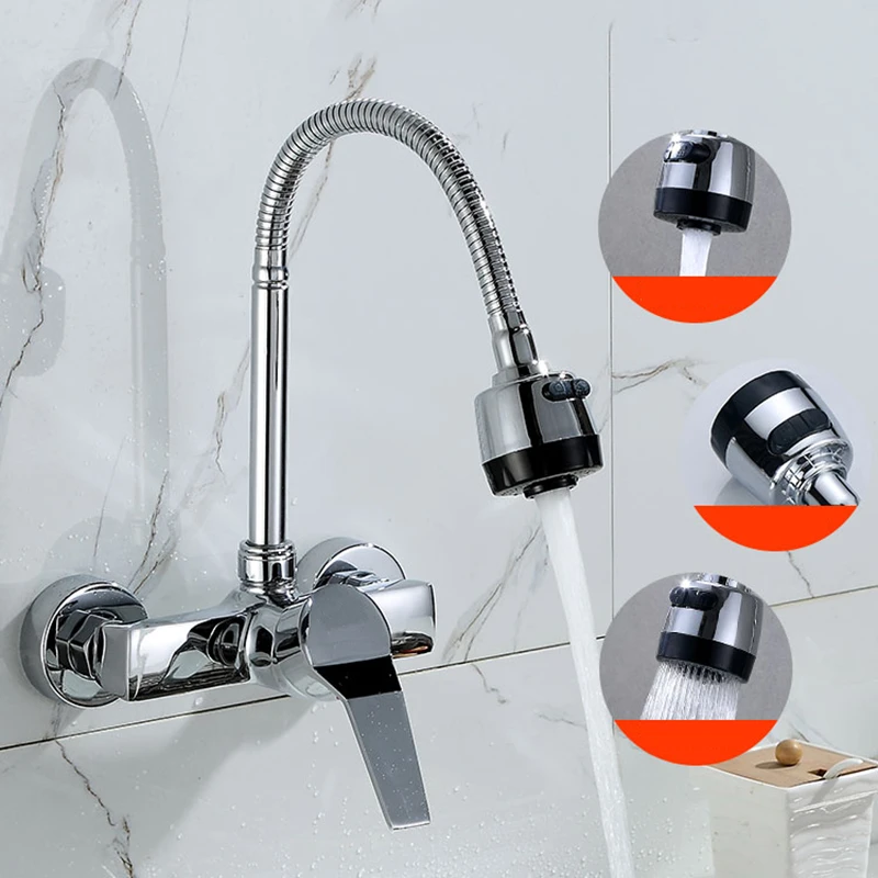 Kitchen Sink Faucets 360 Rotatable Single Lever Stainless Steel Wall-Mounted Kitchen Tap Ktichen Faucet Chrome Finished