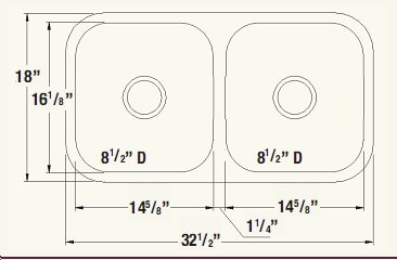 20 Gauge Stainless Steel 33" x 22" x 8" Double Bowl Drop-in ... Kitchen Sink. Model(s) LWDB332284 ... Sink. Sink is manufactured from 20 gauge 300 series Stainless Steel ... Cutout Dimensions for Top Mount Installation:.