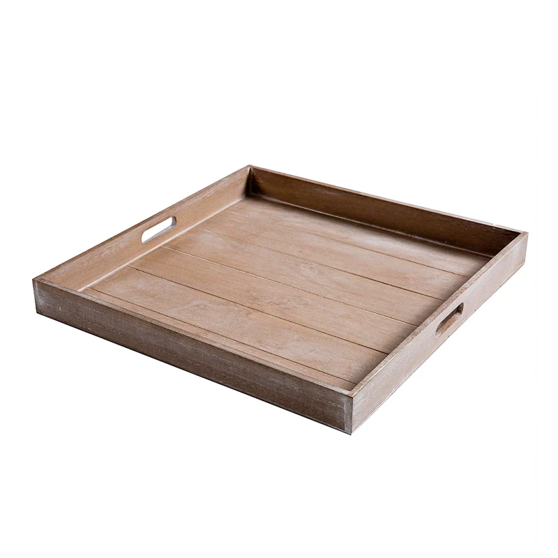 MyGift Shabby Chic Whitewashed Wood Breakfast Serving Tray with Cutout ... Featuring a shabby chic whitewashed finish and solid wood construct, this rectangular wooden tray is an excellent accessory for serving food and drinks, or delivering breakfast in bed to a loved one. Read more Rustic Style The distressed whitewashed wood serving tray provides a stylish way to display decorative objects or serve guests.