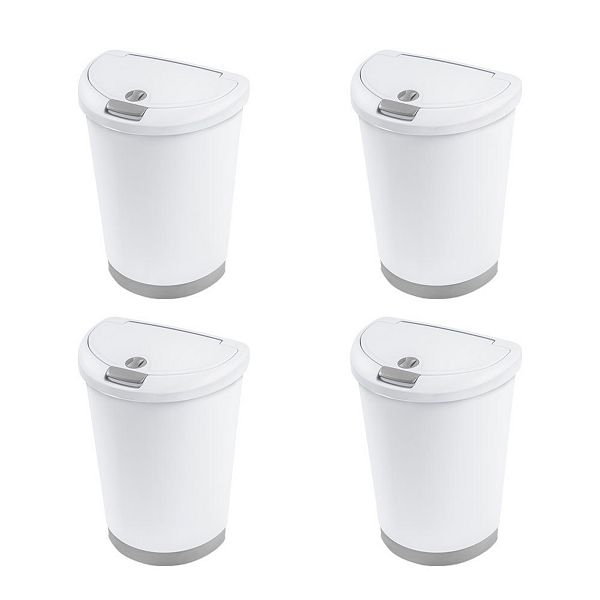 Sterilite White Touch Lock 13-Gallon Waste Can | Big Lots $17.99 White Touch Lock 13-Gallon Waste Can By Sterilite Product Overview Description TouchTop white waste can comes in a D-shape that's designed to fit neatly against a wall or cabinet. With smooth surfaces, this waste can is extremely easy to clean. The locking lid feature keeps young children and animals out of the trash. Product Details