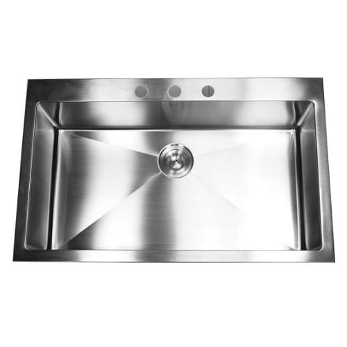 KRAUS 33 x 22 inch Drop-In Top Mount Standart PRO Single Bowl ... OUTER SINK DIMENSIONS: 33 in. L x 22 in. W x 9 in. D; minimum cabinet size: 36 in ; DROP-IN SINK DESIGN allows for top mount installation with any Type of kitchen counter ; DURABLE AND DENT-RESISTANT sink made with premium Tru16 real 18-gauge T304 Stainless steel