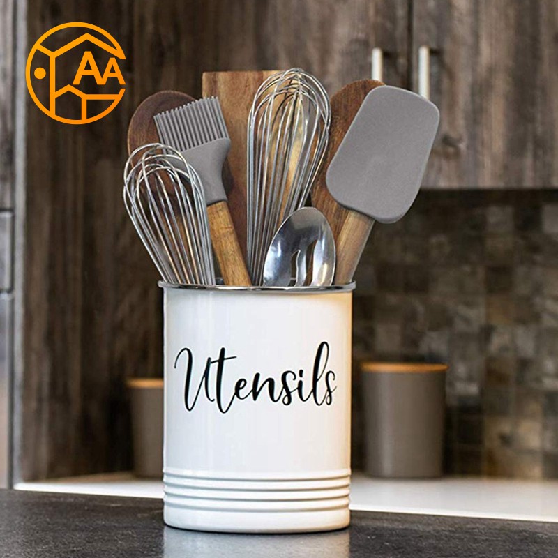 Kitchen Utensil Holder | Wayfair Our vintage utensil holder crock is a decorative and functional solution for storing all your kitchen tools easily at hand. Decorate, organize, and beautifully display your cooking utensils in this farmhouse kitchen utensil holder. This white utensil holder for a countertop has a classic round shape that will fit well with any decor style.
