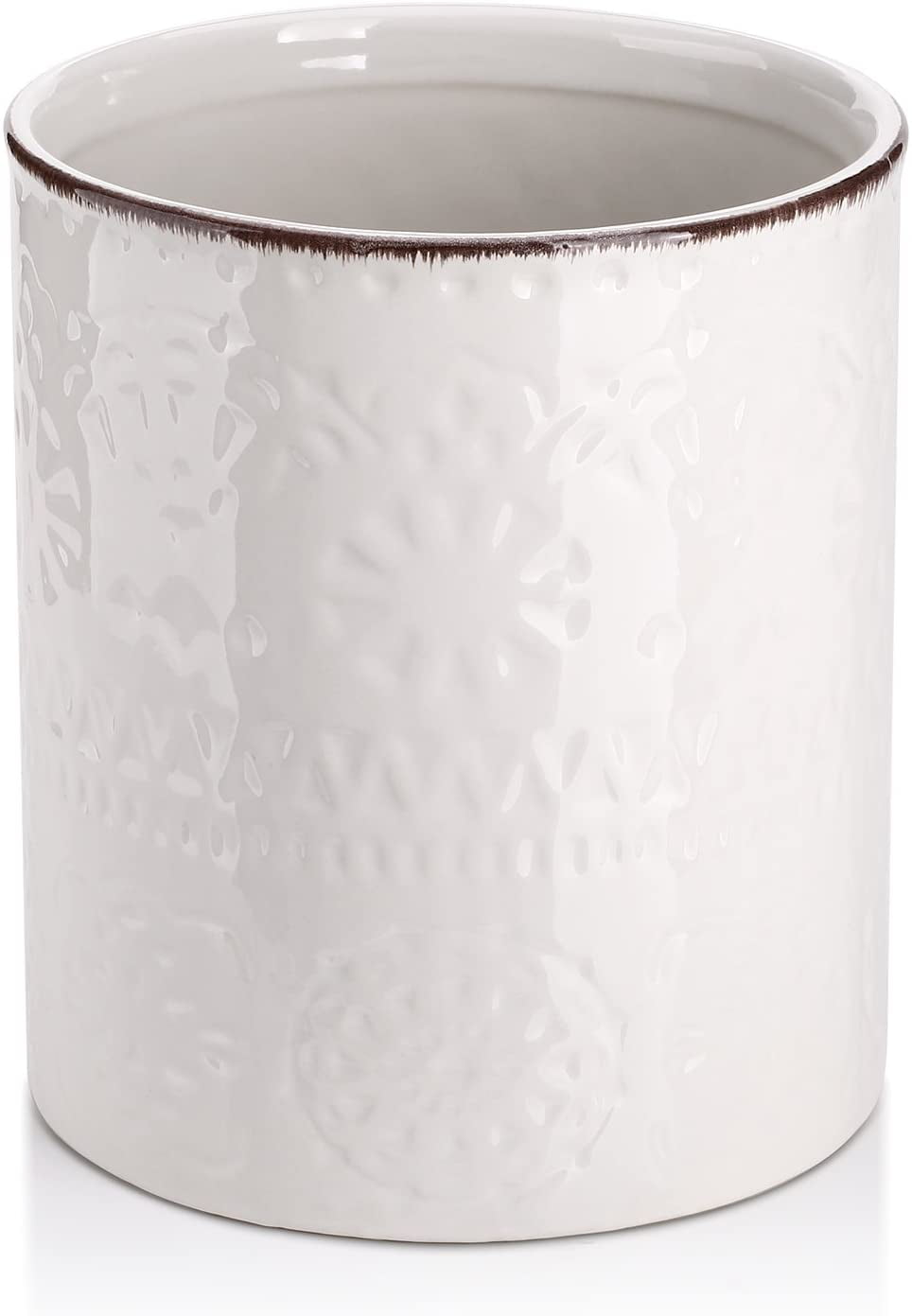 Gracie Oaks Kitchen Utensil Holder, Large Ceramic Utensil Crock, Vintage Farmhouse Home Kitchen Décor, Deep And Stable, Easy To Clean, White